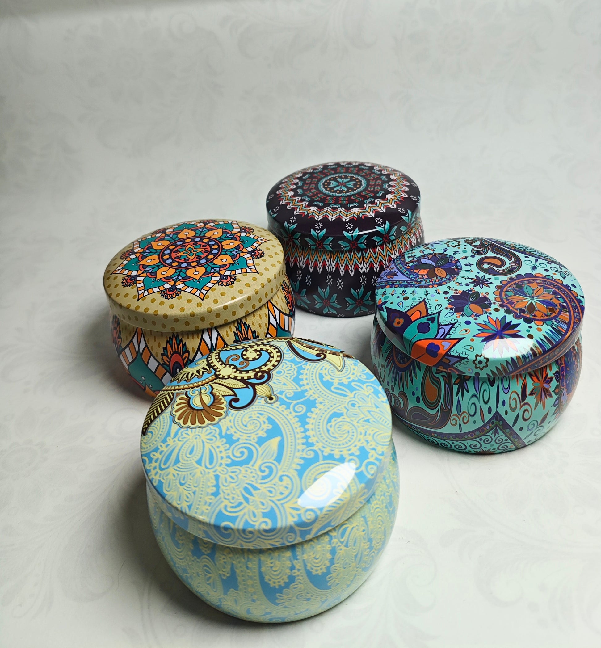 Travel-Friendly Mandala Tin Scented Candle – Boho Gift & Décor